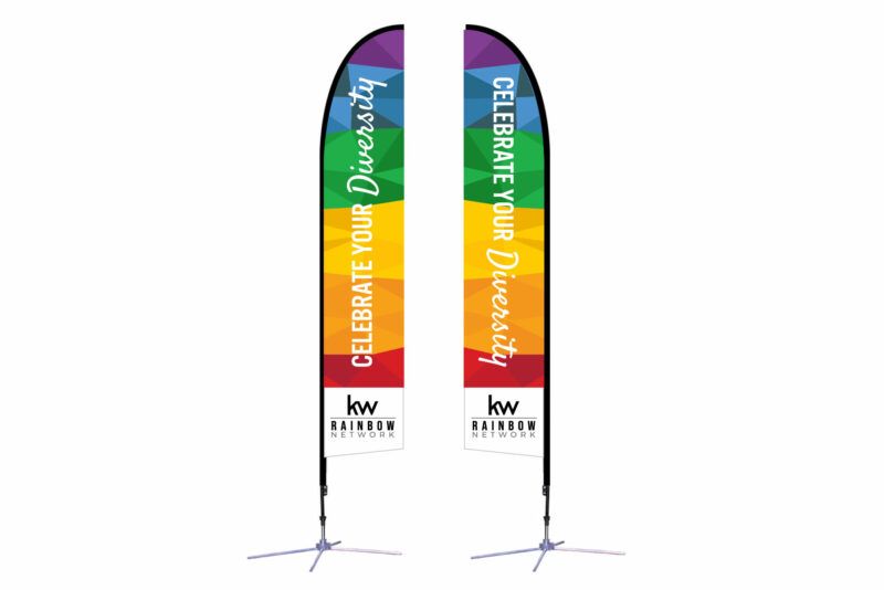 KW Rainbow Network | 14 ft. Feather Flag X-Based Double-Sided